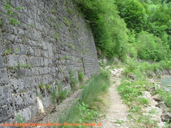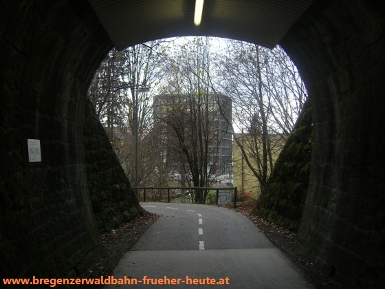 Nun : Zwischen Bregenz und Kennelbach kann man die Bahntrasse nur noch erahnen. Hier findet man noch den Riedentunnel im Bregenzer Vorort Rieden. Auch am ehemaligen Bahnhof Vorkloster findet man noch eine alte Remise. Ansonsten sind dort die meisten Spuren verschwunden.